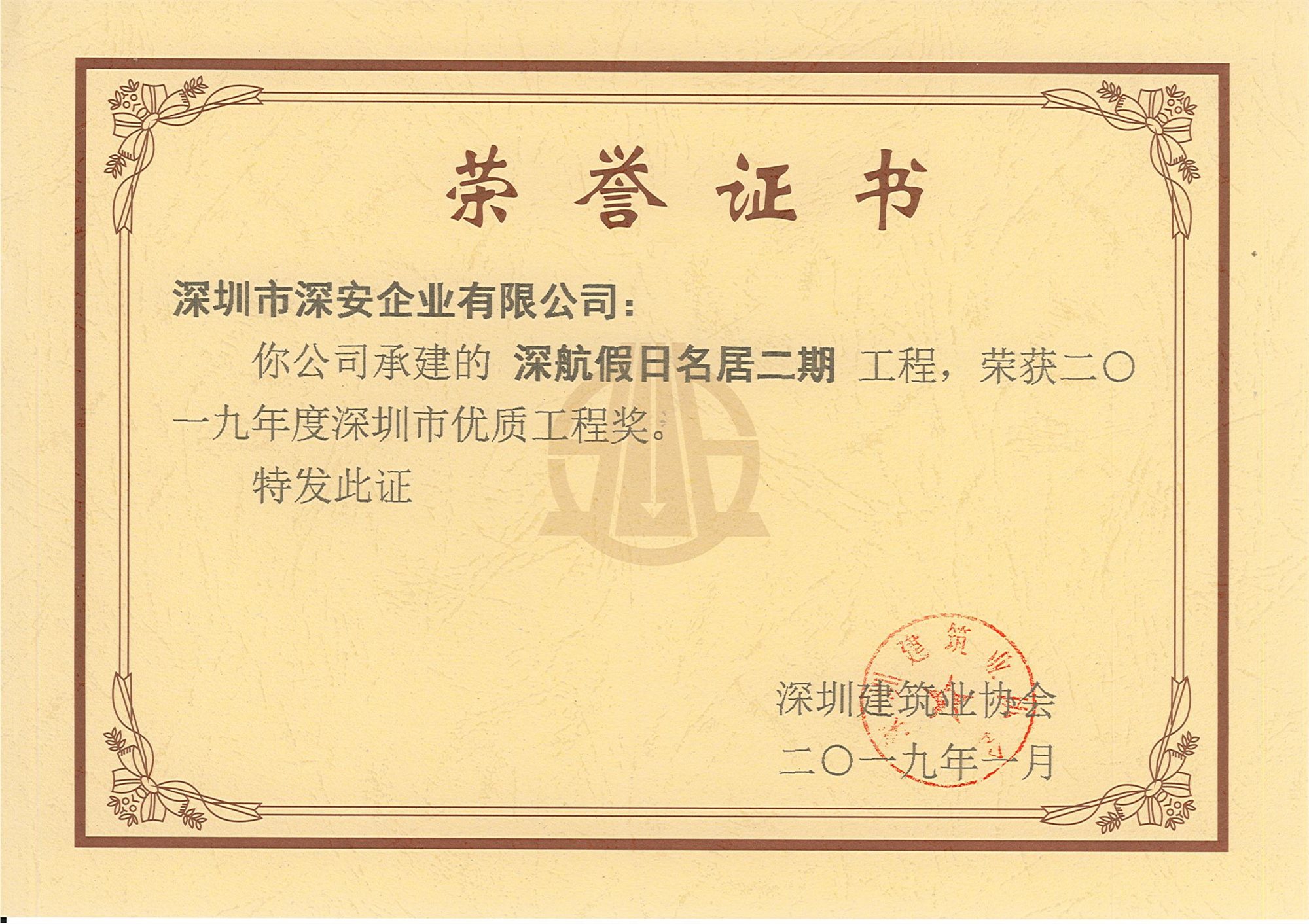 8月19日,深安企業(yè)獲深圳市市場監(jiān)督管理局頒發(fā)2018年度廣東省“守合同重信用”企業(yè)證書。這是深安企業(yè)繼2017年度獲此證書后,再次獲評“廣東省守合同重信用”企業(yè)。