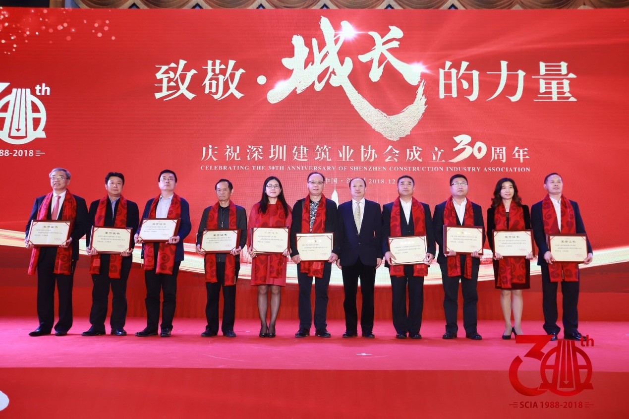 深圳建筑業(yè)協(xié)會30周年慶典 ——深安企業(yè)獲評“優(yōu)秀企業(yè)”