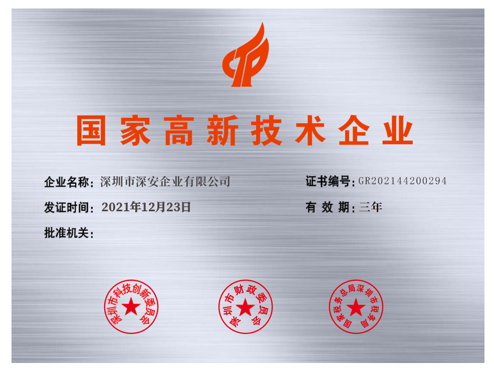 深安企業(yè)獲認(rèn)定為國家高新技術(shù)企業(yè)