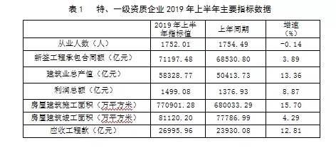 三、2019年上半年建筑業(yè)特、一級資質(zhì)企業(yè)基本情況分析
