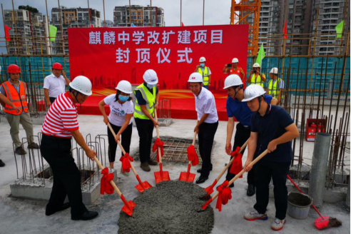 9月15日,由深安企業(yè)施工總承包的深圳南山麒麟中學(xué)改擴(kuò)建項(xiàng)目舉行了封頂儀式。