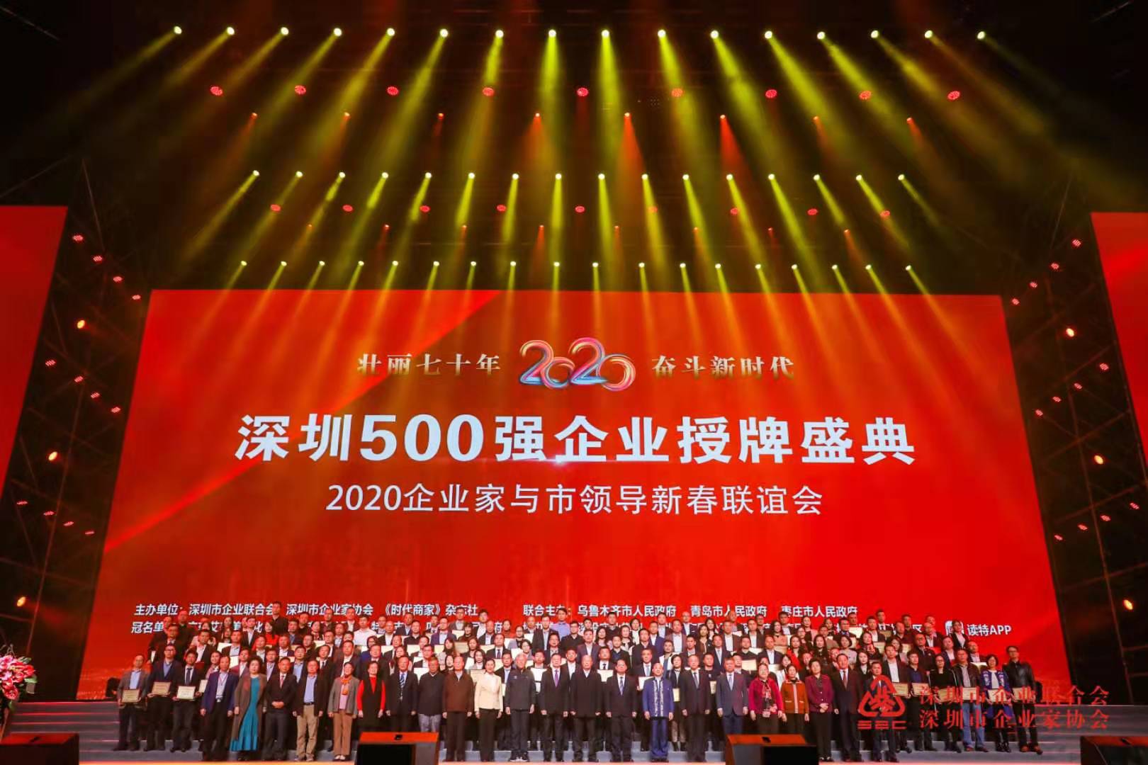 12月10日,“壯麗七十年,奮斗新時代”深圳500強企業(yè)授牌盛典暨2020企業(yè)家與市領導新春聯(lián)誼會在深圳灣體育中心隆重舉行。