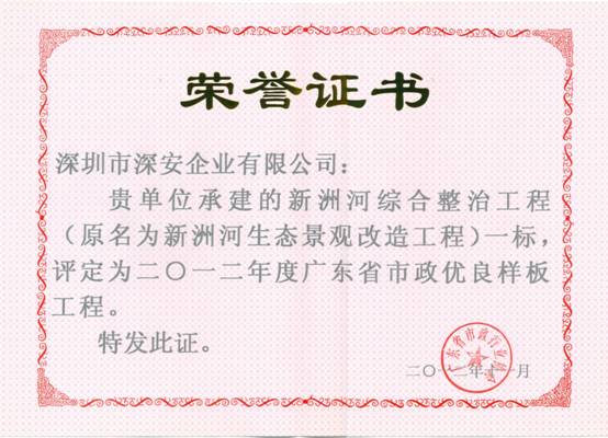 深安企業(yè)“新洲河綜合整治工程”獲省優(yōu)工程
