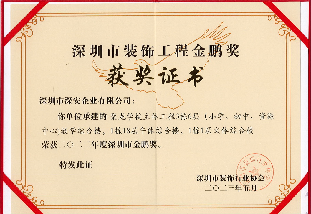 聚龍學(xué)校工程榮獲2022年度深圳市裝飾工程“金鵬獎(jiǎng)”