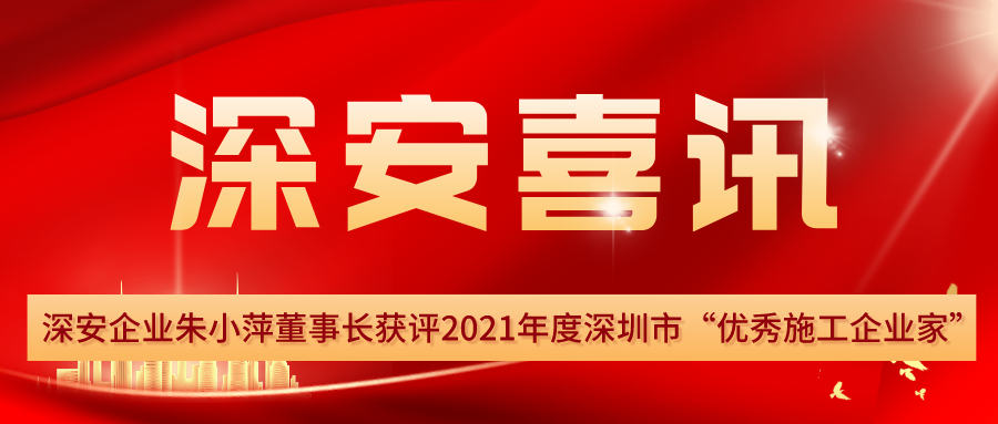 喜訊 | 深安企業(yè)朱小萍董事長獲評2021年度深圳市“優(yōu)秀施工企業(yè)家”